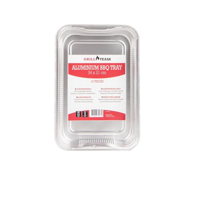 Méret: 34x21x4,5cm Kiszerelés: 10 db GrillTeam alumínium grill/bbq tálca, 10 db egyszer használatos alumínium ...