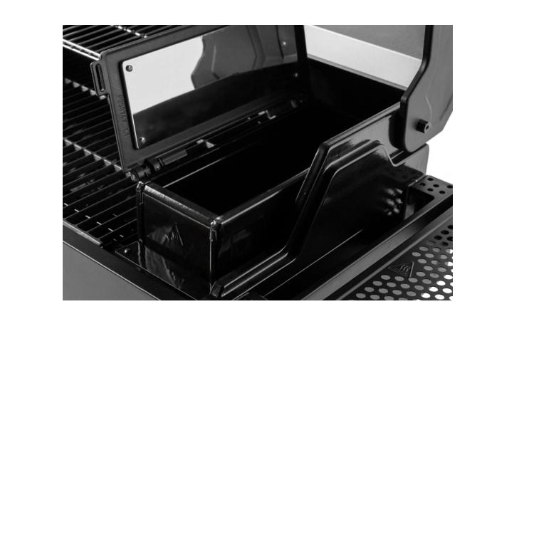 MiniHopper™ technológia: 2,3 kg faszén vagy 3 kg brikett kapacitás, akár 8 órás használatra.