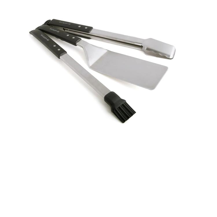 A Broil King 64103 Imperial 3 részes grill készlet prémium minőségű szerszámokat kínál a grillezéshez. Tartalmaz egy rozsdamentes acél fogócsipeszt, egy 50 cm-es grill lapátot és egy 260 °C-ig hőálló szilikon kenőecsetet. Az eszközök tartós, 1,8 mm vastag rozsdamentes acélból készülnek, nagy sűrűségű műgyanta nyéllel és elegáns rozsdamentes betétekkel. A praktikus akasztókkal ellátott szerszámok mosogatógépben tisztíthatók, így ideális választás a Broil King grillek kiegészítésére.