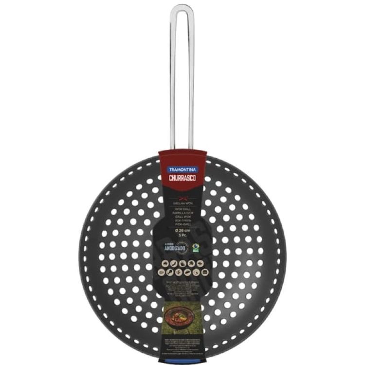 | A 26 centiméteres fogantyús Tramontina Churrasco perforált eloxált alumínium wok grillsütővel a legjobb megoldást kínálja a grillezéshez. Használata szénsütőkön ajánlott és ideális zöldségek, halak és rágcsálnivalók grillezésére, lehetővé téve a grillsütő tálalását is, változatosabb ételekkel és sokkal könnyebb elkészítéssel. Anyaga ellenáll a kopásnak és a magas hőmérsékletnek, a rozsdamentes acél fogantyú pedig segít a kezelésben. Tökéletes választás, hogy még finomabbá és különlegesebbé tegye családi ebédjét! |