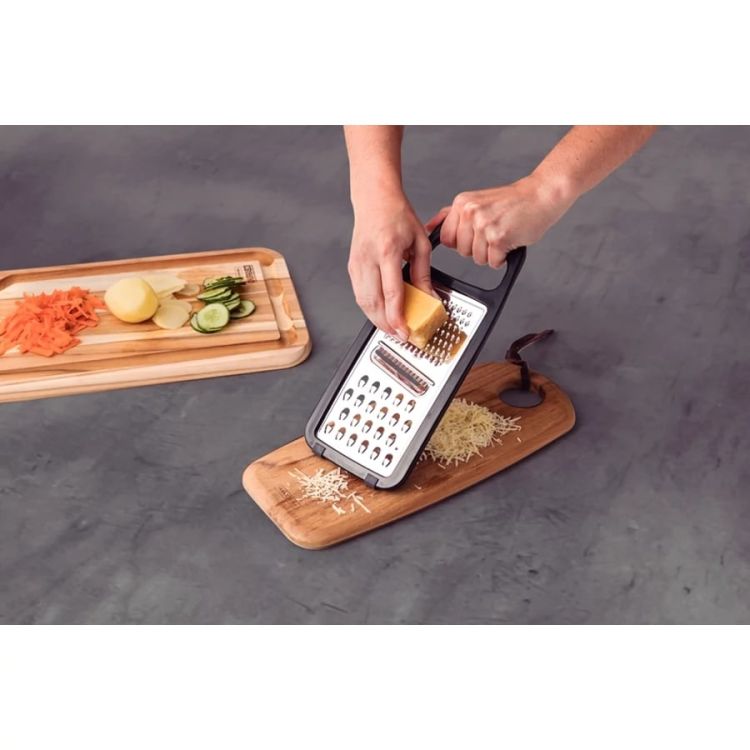 | Tegye változatossá az összetevők elkészítését a Tramontina Utilitá rozsdamentes acél és ABS fekete gumi bázisú reszelővel. Az Utilità termékcsaládból készült darab kényelmet és különféle vágási lehetőségeket kínál, így Ön újíthat és új típusú készítményeket készíthet. A reszelő rozsdamentes acél pengével készül, ami biztosítja a tartósságát és hosszabb ideig megőrzi eredeti tulajdonságait. Csúszásmentes gumi talppal ellátott ABS fogantyúval rendelkezik, amely kényelmes és biztonságos kezelést tesz lehetővé. |